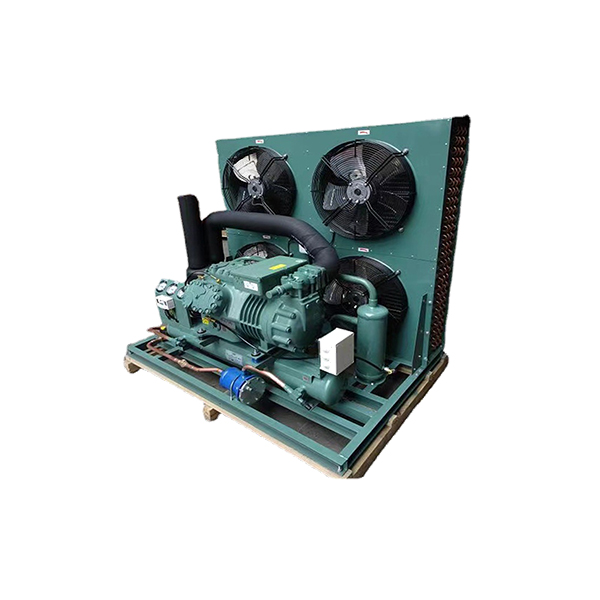 冷凝设备即为制冷压缩机的排热装置,其根据现场情况即可以与压缩机及附属部件加工制作成一体式制冷机组、也可以设计为分体结构。